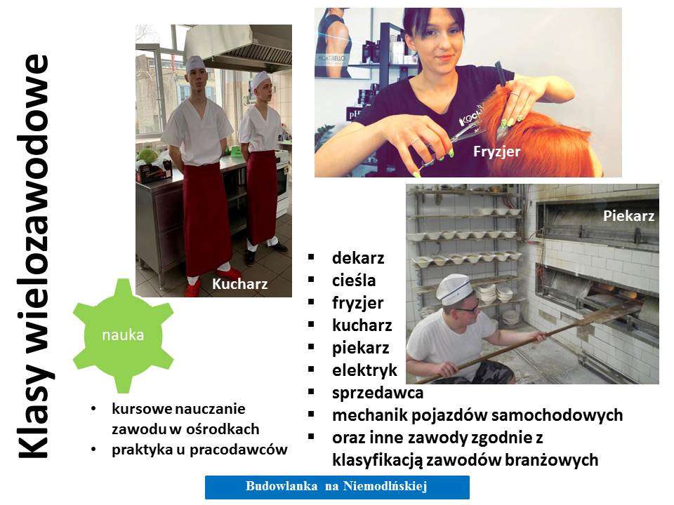 - wiele innych, zgodnie z klasyfikacją zawodów szkolnictwa branżowego.