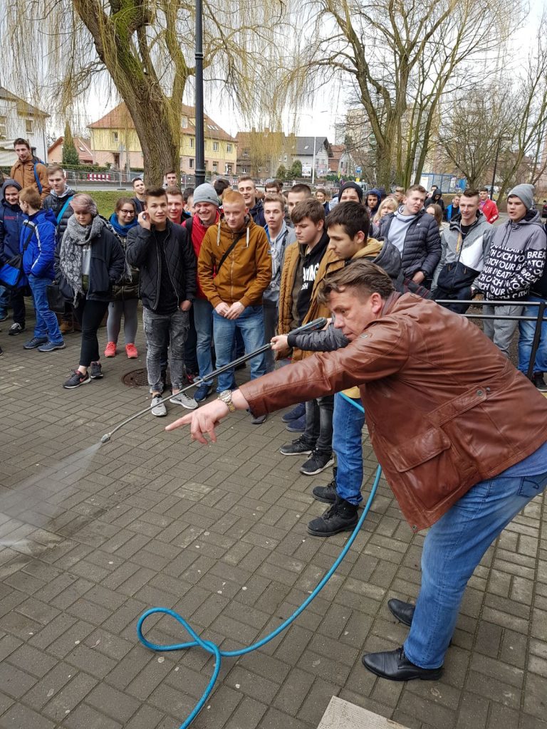W dniu 14.03.2018r. w Zespole Szkół Budowlanych z inicjatywy Pani Dyrektor Violetty Szczepkowskiej odbyło się kolejne bardzo ciekawe szkolenie zawodowe. Na zaproszenie dyrekcji szkoły Firma Romanowski Group reprezentowana przez właściciela firmy Pana Jarosława Romanowskiego przeprowadziła szkolenie praktyczne oraz pokaz z zakresu renowacji elewacji budynku. Uczniowie w czasie szkolenia mogli zapoznać się z najnowszymi metodami technologicznymi które są niezwykle skuteczne w czyszczeniu elewacji. Po szkoleniu praktycznym młodzież miała przywilej uczestniczenia w wykładzie przeprowadzonym przez Dyrektora Firmy INERIO Pana Prof. nzw. dr hab. inż. Zbigniewa Pluteckiego. W czasie prezentacji młodzież poznała innowacyjne rozwiązania dla energetyki komunalnej i zawodowej.