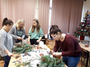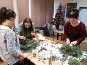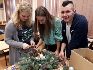 W dniu dzisiejszym, tj.21 grudnia, uczniowie naszej szkoły – technik architektury krajobrazu, technik ogrodnik oraz technik aranżacji wnętrz, połączyli siły aby przygotować stroiki bożonarodzeniowe, które będą rozświetlały ich stoły podczas Wigilii klasowych. Zajęcia praktyczne pod opieką Pań Małgorzaty Karaczyn oraz Urszuli Jakubiec zostały połączone z zajęciami teoretycznymi, dzięki którym uczniowie mogli zapoznać się z różnymi gatunkami drzew iglastych oraz ich kwiatostanami m.in. świerk pospolity, sosna pospolita czy jałowiec pospolity.