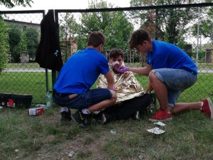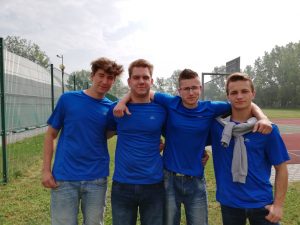 12.05.2018r. uczniowie naszej szkoły – z klasy 3bG:  Paweł Bojczuk – kapitan oraz Paweł Kępiński, Patryk Gajos i Mateusz Erens pod opieką wychowawcy Hufca Pracy w Opolu wzięli udział w etapie rejonowym V Mistrzostw Pierwszej Pomocy PCK. Zadaniem każdej drużyny było zmierzenie się z przygotowanymi konkurencjami, w skład których wchodziło 5 pozorowanych scenek urazowych oraz część teoretyczna.  W części praktycznej drużyny musiały udzielić pierwszej pomocy nieprzytomnemu, nieoddychającemu poszkodowanemu w pomieszczeniu, gdzie ulatniał się gaz oraz drugiemu poszkodowanemu, który był w szoku i chorował na astmę. Kolejną scenką urazową było udzielenie pomocy poparzonej osobie, która rozpalała grilla przy użyciu płynnej rozpałki oraz osobie panikującej, przeszkadzającej podczas akcji ratowniczej. Dwie kolejne scenki były związane z wypadkami samochodowymi, a ostatnią było udzielenie pomocy dwóm poszkodowanym, którzy odpalili zrobioną przez siebie petardę. Poza konkurencjami mistrzostw pierwszej pomocy przeprowadzone zostały również ćwiczenia pożarnicze, obejmujące rozwijanie i zwijanie węża strażackiego czy celowanie z armatki wodnej oraz test wiedzy pożarniczej. Zespół pod opieką Hufca Pracy w Opolu zajął ostatecznie czwarte miejsce. Nasi gimnazjaliści świetnie się spisali i dotrzymali kroku znakomicie wyszkolonym drużynom z liceum.