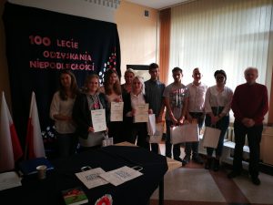 W konkursie wzięli udział: Szymon Drąg 2E, Michał Mros 3D, Domimika Nawrat 2TA, Milena Chimiak 2TA, Aleksandra Biżek 4TA, Dawid Gawlik 3AG, Hanna Badora 1TA. Wszyacy uczestnicy wykazali się dużą wiedzą w tym temacie. Ogólny poziom był bardzo wysoki, co dobrze świadczy o zaangażowaniu uczniów w zdobywanie wiedzy. Po zakończeniu odpowiedzi jury w składzie: Marek Brożek – przewodniczący, Lucyna Magierowska – Siruk – wiceprzewodnicząca, Marzena Jastrząb – Policzek – członek oceniło odpowiedzi uczestników. Na podium stanęli: 1 miejsce Hanna Badora 1TA, 2 miejsce Milena Chimiak 2TA, 3 miejsce Domimika Nawrat 2TA. Gratulujemy osiągniętych sukcesów.