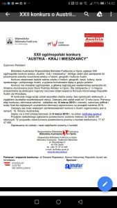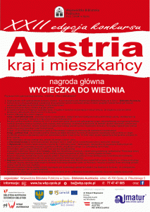 Biblioteka Austriacka Wojewódzkiej Biblioteki Publicznej w Opolu ogłasza XXII ogólnopolski konkurs wiedzy „Austria – kraj i mieszkańcy”, którego celem jest zachęcenie do poszerzania szeroko rozumianej wiedzy o historii, geografii i kulturze Austrii.