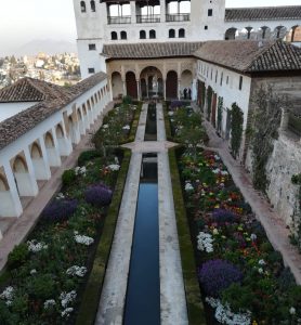 Alhambra – warowny zespół pałacowo-parkowy – została zbudowana w XIII wieku, jej rozbudowa zakończyła się w wieku XIV. Składa się z czterech części: Alcazaby (cytadeli), Pałacu Nasrydów, Pałacu Karola V i ogrodów Generalife. Alhambra należy do najpiękniejszych zabytków kultury arabskiej w Europie. Byłą ostatnim bastionem obrony Arabów, których z Europy w 1492 r. przepędziła królowa Izabela I Katolicka i jej mąż król Ferdynand. W Alhambrze też królowa podarowała Krzysztofowi Kolumbowi klejnoty na jego pierwszą wyprawę w nieznane. W tak pięknym i ważnym dla kultury europejskiej miejscu stażyści mieli możliwość pogłębiania swych umiejętności zawodowych.