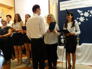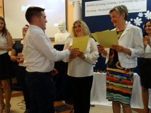 W dniu 26.04.2019 uroczyście pożegnaliśmy Absolwentów klas: IV TECHNIKUM ARANŻACJI WNĘTRZ oraz III LICEUM OGÓLNOKSZTAŁCĄCEGO DLA DOROSŁYCH. Uroczystość rozpoczęła się wspólnym odśpiewaniem hymnu narodowego oraz oficjalnym przekazaniem pocztu sztandarowego. Wiele ciepłych słów skierowała do Absolwentów Pani Dyrektor Violetta Szczepkowska życząc im jak najlepszych wyników na maturze oraz trafnego wyboru drogi życiowej. W czasie uroczystości zostały rozdane świadectwa z wyróżnieniem oraz inne nagrody min. dla najlepszego Absolwenta, za wysoką frekwencję, osiągnięcia sportowe oraz najwyższe czytelnictwo . Część artystyczną umilili nam młodzi artyści – uczniowie naszej szkoły.