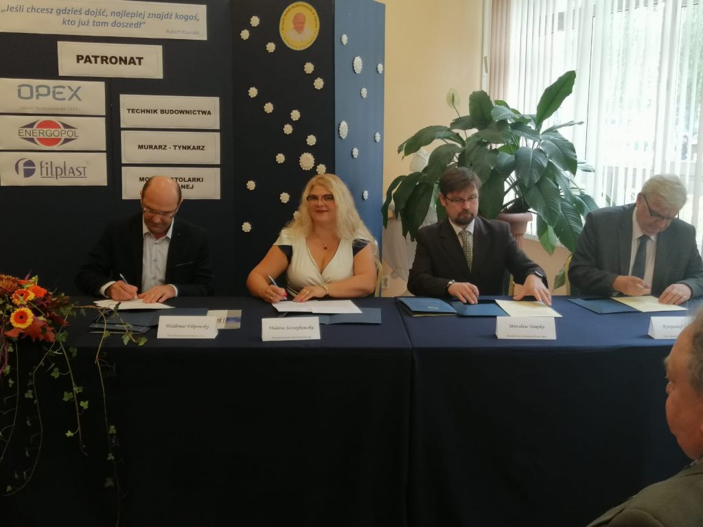 Uroczyste podpisanie umowy patronackiej odbyło się pomiędzy: Zespołem Szkół Budowlanych, który reprezentowała pani dyrektor Violetta Szczepkowska, a firmami:  OPEX SA reprezentowaną przez dyrektora ds. technicznych pana Mirosława Tempkę, Energopol Trade Sp. z o.o. reprezentowaną przez Prezesa Zarządu pana Krzysztofa Skrzypka, Filplast Sp. z o.o. reprezentowaną przez Prezesa Zarządu pana Waldemara Filipowskyego.