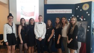 8 listopada punktualnie o godz. 11:11, w kolejną rocznicę odzyskania niepodległości przez Polskę, wszyscy uczniowie Naszej Szkoły zaśpiewali „Mazurka Dąbrowskiego”. Śpiew poprzedzony był uroczystym „Koncertem dla Niepodległej”, podczas którego uczniom zostały przypomniane wydarzenia z historii Polski z okresu rozbiorów i po odzyskaniu niepodległości. Koncert uświetniony został utworami w przepięknym wykonaniu uczennic Naszej Szkoły – Magdaleny Gebauer, Magdaleny Dogiel i Emilii Widery. Dodatkowo wszyscy uczniowie i nauczyciele otrzymali biało-czerwone minikotyliony oraz mogli nabyć przepyszne, słodkie „Niepodległościówki” upieczone przez uczniów klas I TAg i I TBp