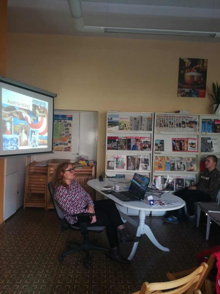 W dniu 15.11.2819r. uczniowie klas: 2A,2C oraz 3E – uczestniczyli w pasjonującym wykładzie w Bibliotece Austriackiej w Opolu na temat tego wzbudzającego ekscytację kraju. Wykład miał na celu również przygotowanie uczniów do odbywającego się rokrocznie konkursu Wiedzy o Austrii. Prelekcję wygłosiła Pani Monika Wójcik – Bednarz – kierownik Biblioteki Austriackiej w Opolu.