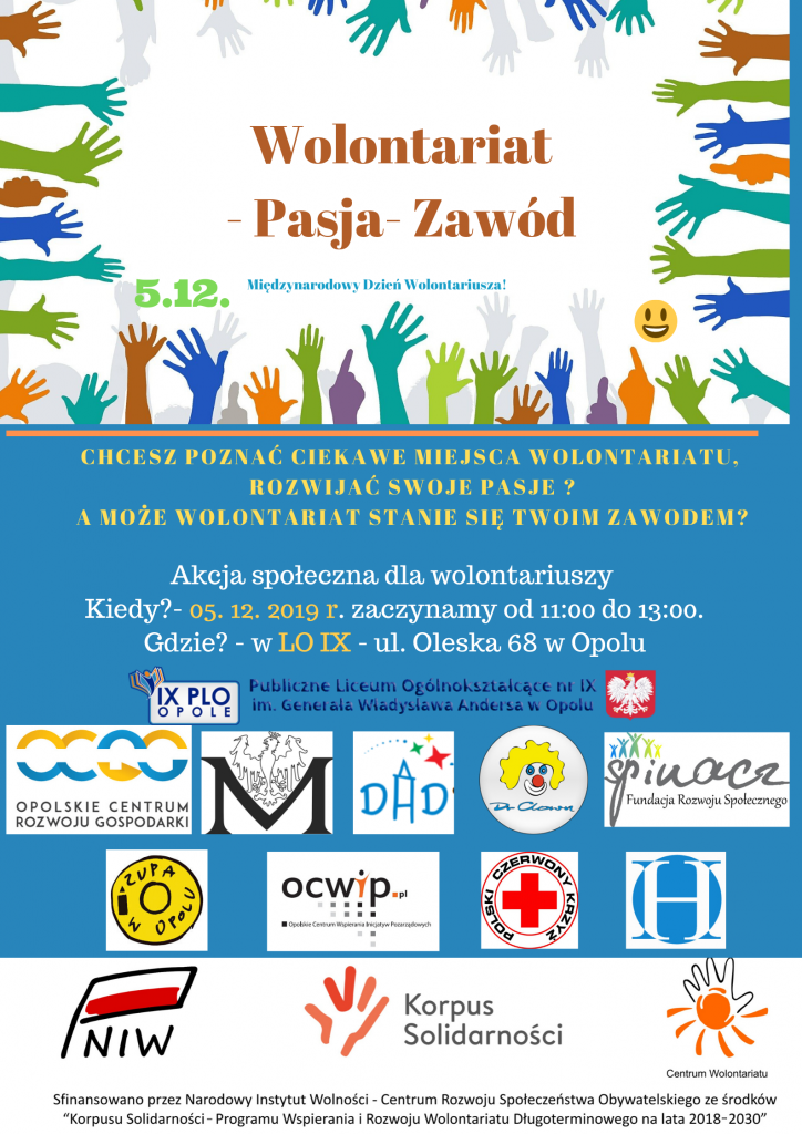 W tym wyjątkowym dniu 05 grudnia  uczniowie z Zespołu Szkół Budowlanych uczestniczyli w Debacie Wolontariackiej pt. WOLONTARIAT – PASJA – ZAWÓD w ramach projektu Korpus Solidarności. W spotkaniu udział wzięli przedstawiciele: Muzeum Śląska Opolskiego, Dr Clown, Spinacz, Zupa w Opolu, Polski Czerwony Krzyż, Opolskie Hospicjum Betania i Domowe Hospicjum dla Dzieci. Przedstawiciele powyższych instytucji i organizacji przedstawiali młodzieży, w jaki sposób, mogą działać wolontariacko w tych instytucjach, lub na ich rzecz, we własnej społeczności lokalnej.