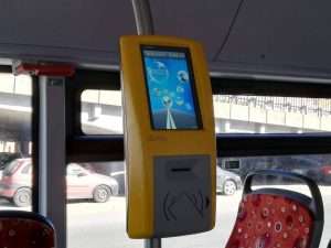 - Biletomat mobilny – urządzenie umieszczone we wszystkich autobusach komunikacji miejskiej, dzięki któremu szybko kupisz bilet jednorazowy. Tu sprawdzisz również ważność swojego biletu okresowego i saldo e-portmonetki, którą też doładujesz, ale jedynie kwotą 20 zł. W biletomatach mobilnych zapłacisz tylko kartą.