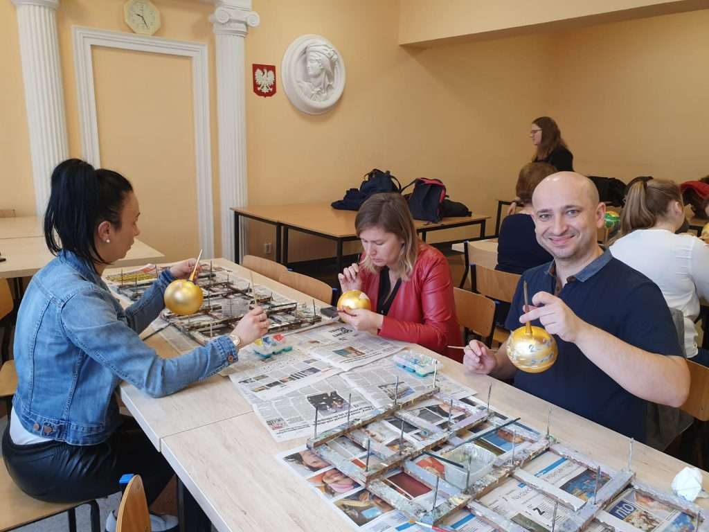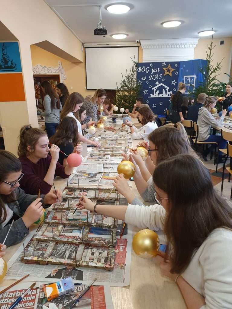 Podniosły klimat został uwieńczony w dniu 19 grudnia, kiedy to nauczyciele wraz z uczniami, jak co roku uczestniczyli w warsztatach bożonarodzeniowych. Wszyscy własnoręcznie malowali bombki o różnych motywach od bałwanków, choinek, wzorków po krajobraz przyrodniczy. Spotkanie to miało na celu również kształtowanie wrażliwości i ekspresji plastycznej naszych uczniów. Przybliżamy młodym Polakom, którzy uczą się w naszej szkole, najpiękniejsze świąteczne tradycje żywiąc nadzieję, że kiedyś oni będą je przekazywali młodszym pokoleniom, dzięki czemu tradycyjne polskie święta przetrwają całe wieki.