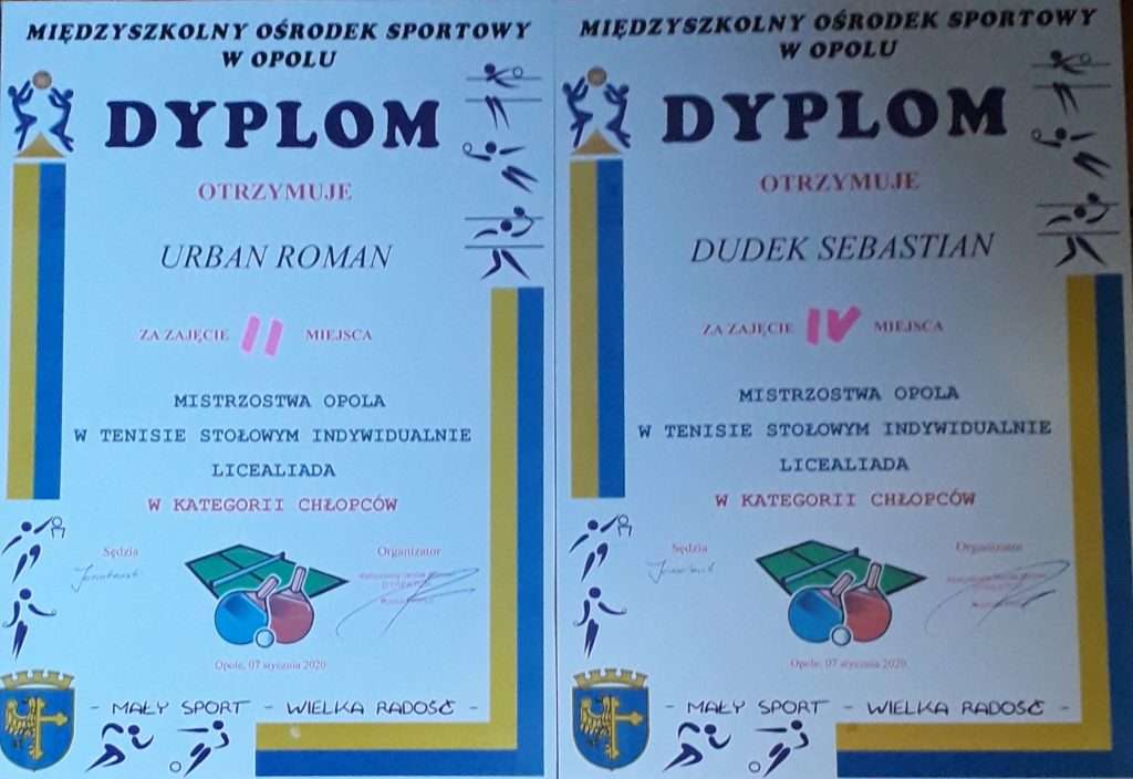 7.01.2020 r. w Międzyszkolnym Ośrodku Sportu odbyły się Mistrzostwa Miasta Opola w tenisie stołowym chłopców. Naszą szkołę reprezentowali : Roman Urban klasa 3e i Sebastian Dudek z klasy 2e pod opieką Joanny Sowa. Uczniowie nasi uzyskali czołowe miejsca II i IV. Tym razem lepszy okazał się Roman Urban zdobywając srebrny medal, natomiast Sebastian Dudek wywalczył IV miejsce. Obydwaj uczniowie awansowali do rozgrywek wojewódzkich, ponieważ 4 pierwsze miejsca na MMO otrzymywały awans. Gratulujemy chłopakom i czekamy na dalsze sukcesy dla ZSB.