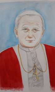 Rysunek Papieża Jana Pawła II  wykonany przez Małgorzatę Zacharow uczennicę klasy 1TAp