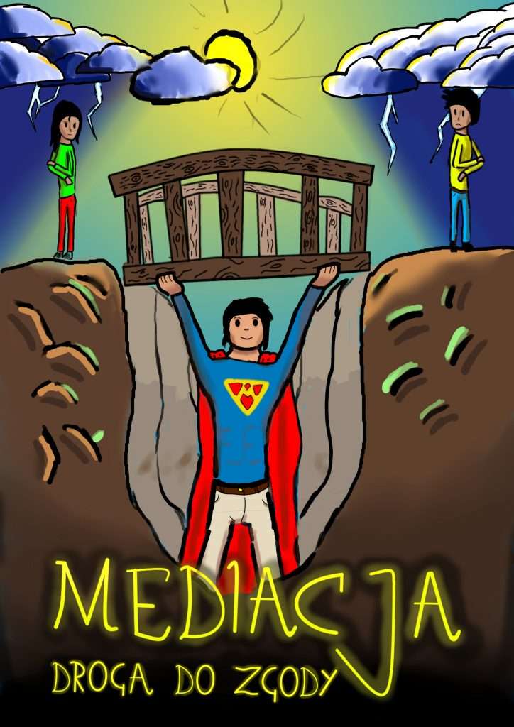 Zadanie konkursowe polega na stworzeniu plakatu promującego mediację – jedną z metod polubownego rozwiązywania sporu.