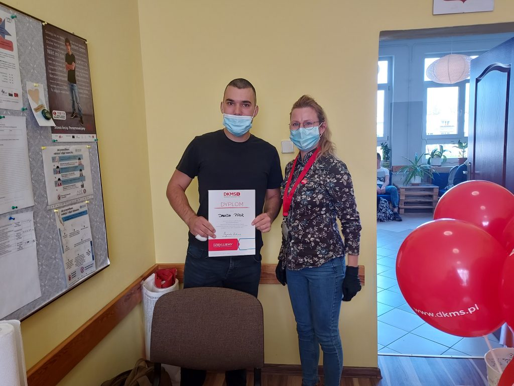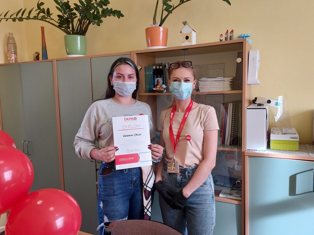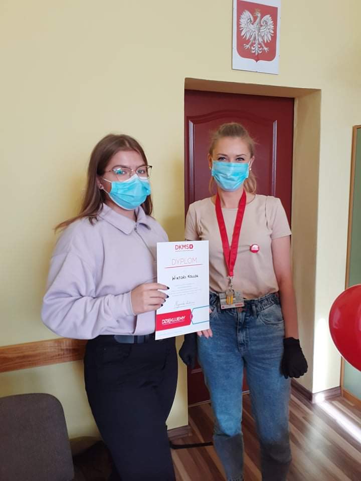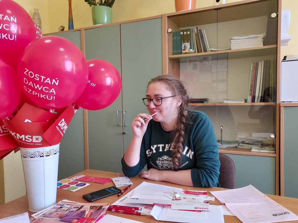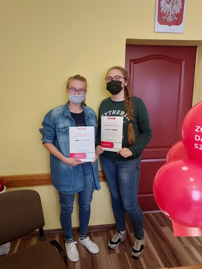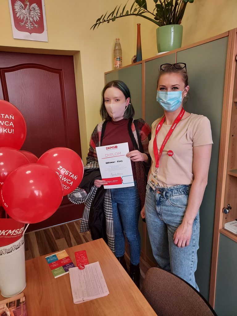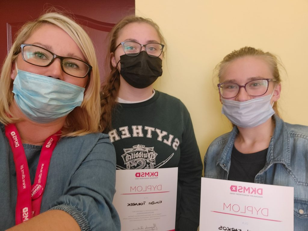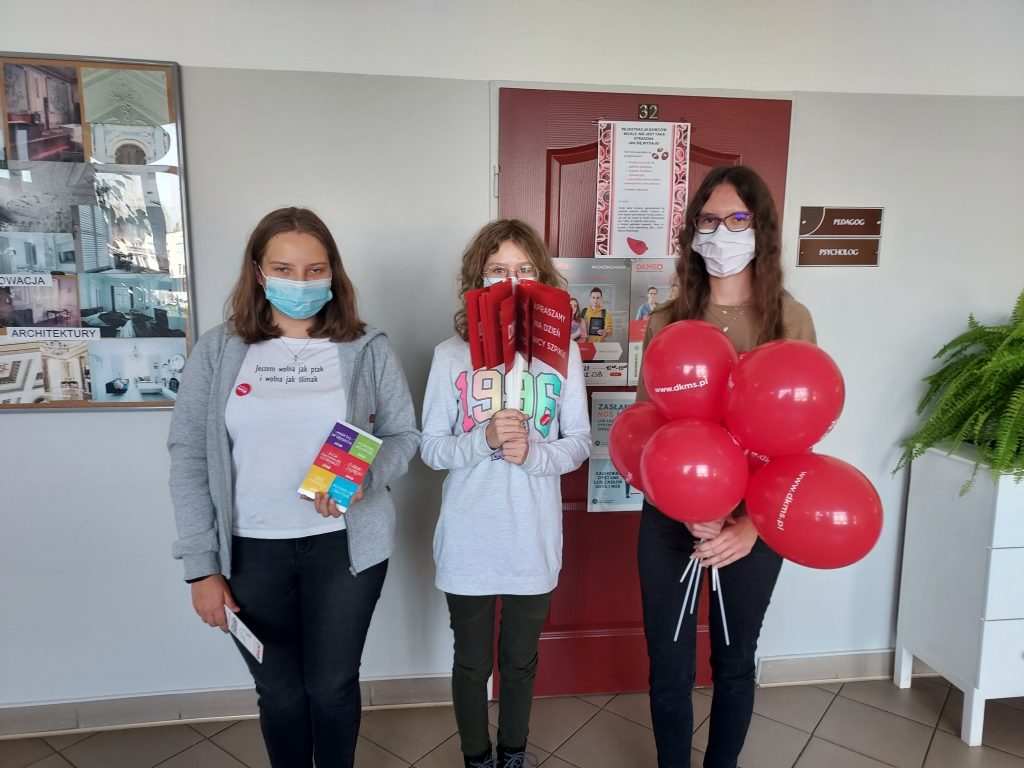 W dniu 27.10.2021r. w naszej szkole odbył się pierwszy dzień rejestracji dawców komórek macierzystych. Od początku października uczniowie podczas lekcji wychowawczych, informowani byli o możliwości rejestracji. Nauczyciele tłumaczyli na czym polega rejestracja, jak wygląda pobranie komórek macierzystych oraz po co warto zarejestrować się w DKMS. Uczennice klasy 2TA1 zorganizowały w szkole akcję informacyjną o rejestracji, zachęcając swoich pełnoletnich kolegów. Dziś finałem akcji by zorganizowany happening w szkole oraz możliwość rejestracji. Cieszymy się, że tak dużo osób – uczniów, nauczycieli, pracowników szkoły – wyraziło chęć pomocy i zarejestrowało się jako potencjalni dawcy. Jeżeli ktoś nie zdążył się zarejestrować, może zgłosić się do doradcy zawodowego, pedagogów i psychologa szkolnego. Jeszcze w dniu 03.11.2021r. zorganizowany zostanie drugi dzień rejestracji dawców, na który już zapraszamy!!!