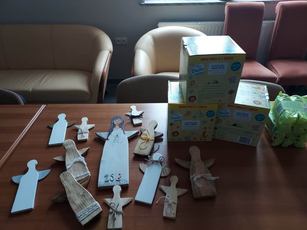 Ferie dla większości uczniów, to czas wypoczynku od szkoły i nauki, ale nie dla naszych wolontariuszy! W związku z Dniem Chorego, który przypada na 11 lutego opiekun szkolnego koła PCK wraz z wolontariuszami ZSB przez okres ferii zimowych przygotowali niespodzianki dla pensjonariuszy hospicjum Betania. Niespodziankami tymi były drewniane aniołki. Wizerunek anioła symbolizuje siłę, ochronę i dobro. To także symbol opieki boskiej, bezpieczeństwa, spokoju i radości. W tak trudnym czasie jakim jest choroba chcemy by ten skromny dar w postaci anioła przyniósł ukojenie.