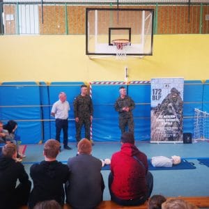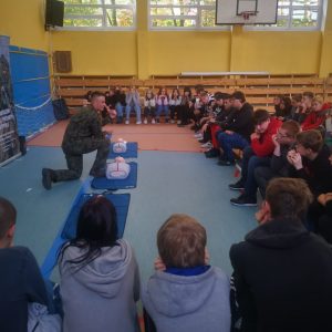 W dniu 05.10.2022 roku pan Stanisław Gaweł z udziałem zaproszonych instruktorów z Wojsk Obrony Terytorialnej 172 batalionu lekkiej piechoty w Opolu zorganizował praktyczne ćwiczenia z „Podstaw pierwszej pomocy medycznej”. W zajęciach wzięli uczniowie z klas 1TA1 i 1TA2. Instruktorzy omówili i pokazali w praktyczny sposób – krok po kroku – poszczególne etapy udzielania pomocy przedmedycznej przy użyciu fantomów. Przeszkolenie miało na celu utrwalenie omówionych na lekcjach wiadomości z przedmiotu „Edukacja dla bezpieczeństwa” oraz nabycie i rozwijanie praktycznych umiejętności udzielania pierwszej pomocy przez uczniów. Być może w przyszłości zaowocuje to uratowaniem chociaż jednego życia ludzkiego…
