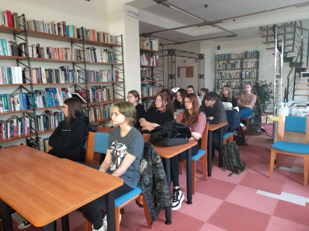 W dniach 16.11.2022r. i 21.11.22r. uczniowie klasy 1TB uczestniczyli w lekcji bibliotecznej-warsztatach językowych z realioznawstwa odbywających się w j. angielskim.