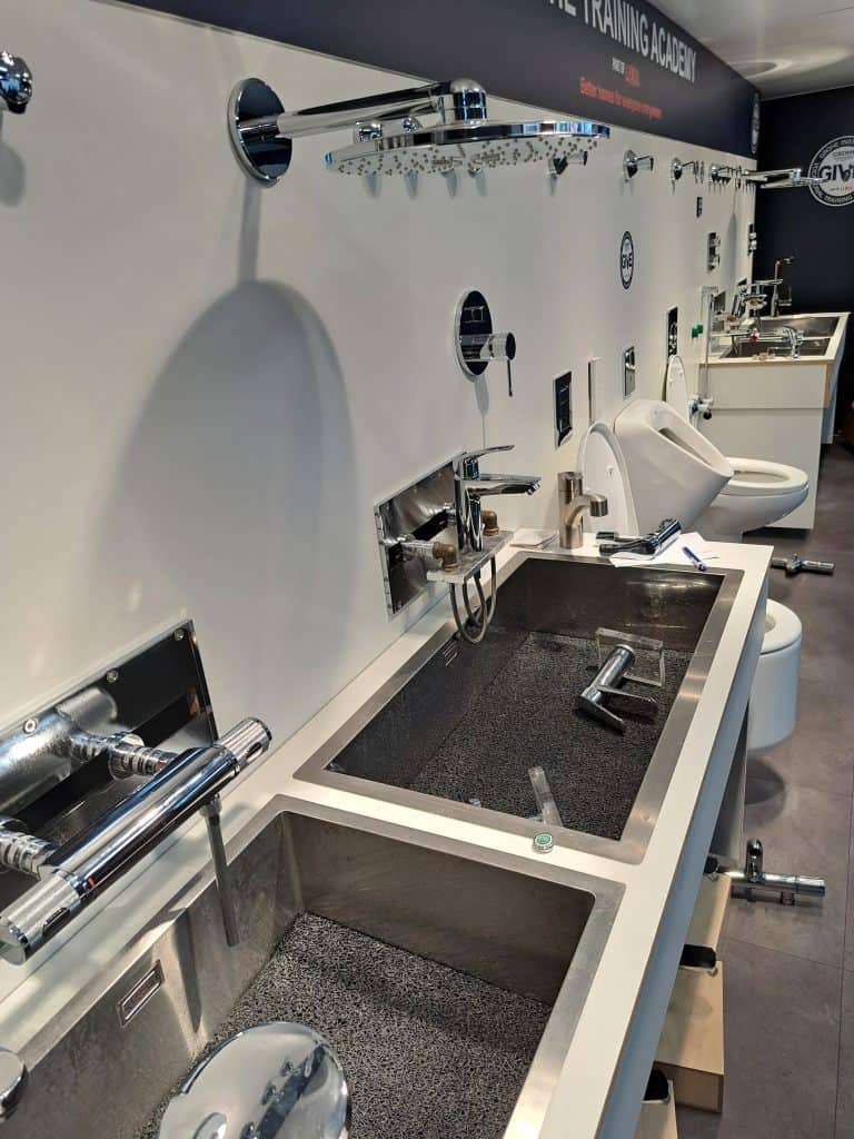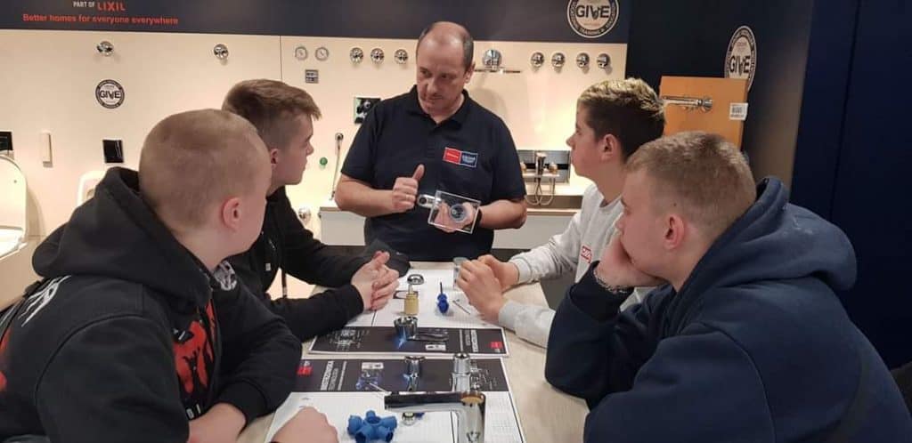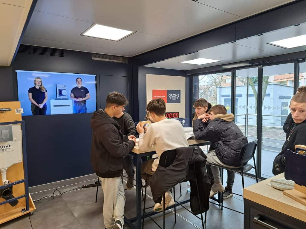 Uczniowie Zespołu Szkół Budowlanych kształcący się w zawodach monter sieci i instalacji sanitarnych oraz monter zabudowy i robót wykończeniowych w budownictwie oraz nasi nauczyciele, wzięli udział w szkoleniu zawodoznawczym, które przeprowadziła firma Grohe. Podczas warsztatów firma specjalizującą się w produkcji i montażu armatury sanitarnej pokazała najnowsze rozwiązania z branży. Uczniowie mieli za zadanie rozrysowanie nowoczesnych połączeń sanitarnych, czy zaprogramowanie wylewki baterii umywalkowej. Zajęcia wzbogaciły wiedzę uczestników o funkcjonowaniu najnowszych rozwiązań stosowanych przy produkcji oraz montażu armatury sanitarnej.
