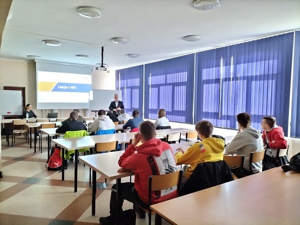 Prelegenci naświetlili sposób funkcjonowania NFZ i finansowania świadczeń zdrowotnych ze środków publicznych. Zwrócili uwagę na konieczność wyboru lekarza pierwszego kontaktu oraz pielęgniarki w chwili uzyskania pełnoletności. Dostęp do procedur medycznych publicznej służby zdrowia możliwy jest ponadto po opłaceniu składki zdrowotnej przez osobę zatrudnioną, na co zwrócono uwagę uczestnikom klas trzecich kończących edukację w bieżącym roku szkolnym. Pracownicy NFZ przekazali młodzieży informację o Teleplatformie Pierwszego Kontaktu i jaką można tam uzyskać pomoc. Wskazano miejsca świadczenia nocnej i świątecznej opieki zdrowotnej, co stanowiło początek dyskusji – kiedy udać się na SOR? Szpitalny Oddział Ratunkowy świadczy usługi medyczne dla wąskiej grupy pacjentów: w przypadku kryzysu zdrowotnego, bezpośredniego zagrożenia życia ludzkiego lub w konieczności wykonania diagnostyki obrazowej w mechanizmie urazów.