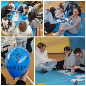 23 listopada zorganizowaliśmy również warsztaty, których celem było przybliżenie Konwencji o prawach dziecka. Analizowaliśmy wybrane zapisy tego dokumentu, rozpatrywaliśmy różne sytuacje w szkole i w domu pod kątem realizacji praw dziecka, rozwiązywaliśmy też test, który pokazał nam na ile te prawa są nam znane i na ile je rozumiemy. Była to doskonała okazja do poszerzenia wiedzy, ale i do integracji trójek klasowych wchodzących w składu Samorząd Uczniowskiego. Efekty naszej pracy można zobaczyć na holu szkoły przy wejściu. Zachęcamy do lektury!