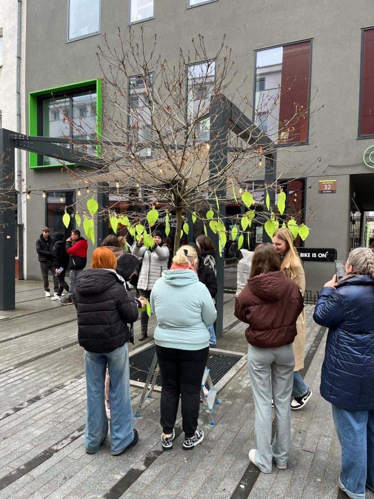 Liście zawieszane na drzewach nie tylko dodawały ulicy Krakowskiej uroku, ale przede wszystkim miały treściowego znaczenia. Każdy liść zawierał ważne informacje dla osób poszukujących pomocy w walce z depresją. Były to kontakty do różnych instytucji, organizacji oraz linii wsparcia, gdzie można uzyskać pomoc i wsparcie w trudnych chwilach.