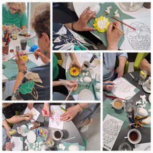 Wolontariusze z  Zespołu Szkół Budowlanych im. Papieża Jana Pawła II w dniu 08.04.2024 roku  spotkali się z paniami seniorkami w Centrum Aktywizacji Społecznej Senior na ul. Krakowskiej 32 w Opolu. Myślą przewodnią naszego działania było  spotkanie międzypokoleniowe. Uczniowie wspólnie z seniorami wykonali świąteczne ozdoby, malowali wykonane w szkolnej pracowni renowacji odlewy gipsowe. Uczestniczki warsztatów mogły odkrywać swoje uzdolnienia do prac manualnych. Warsztaty pozwoliły paniom seniorkom miło twórczo spędzić czas wolny. Dziękujemy pani Ewie Tulej za organizację spotkania oraz Szkolnym Wolontariuszkom klasy 2TA2 Paulinie Dubis, Aleksandrze Larisz i Paulinie Wocka za zaangażowanie.