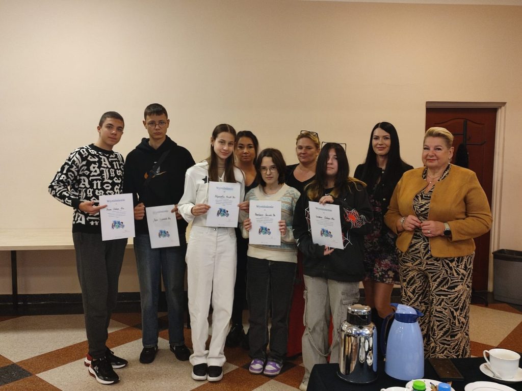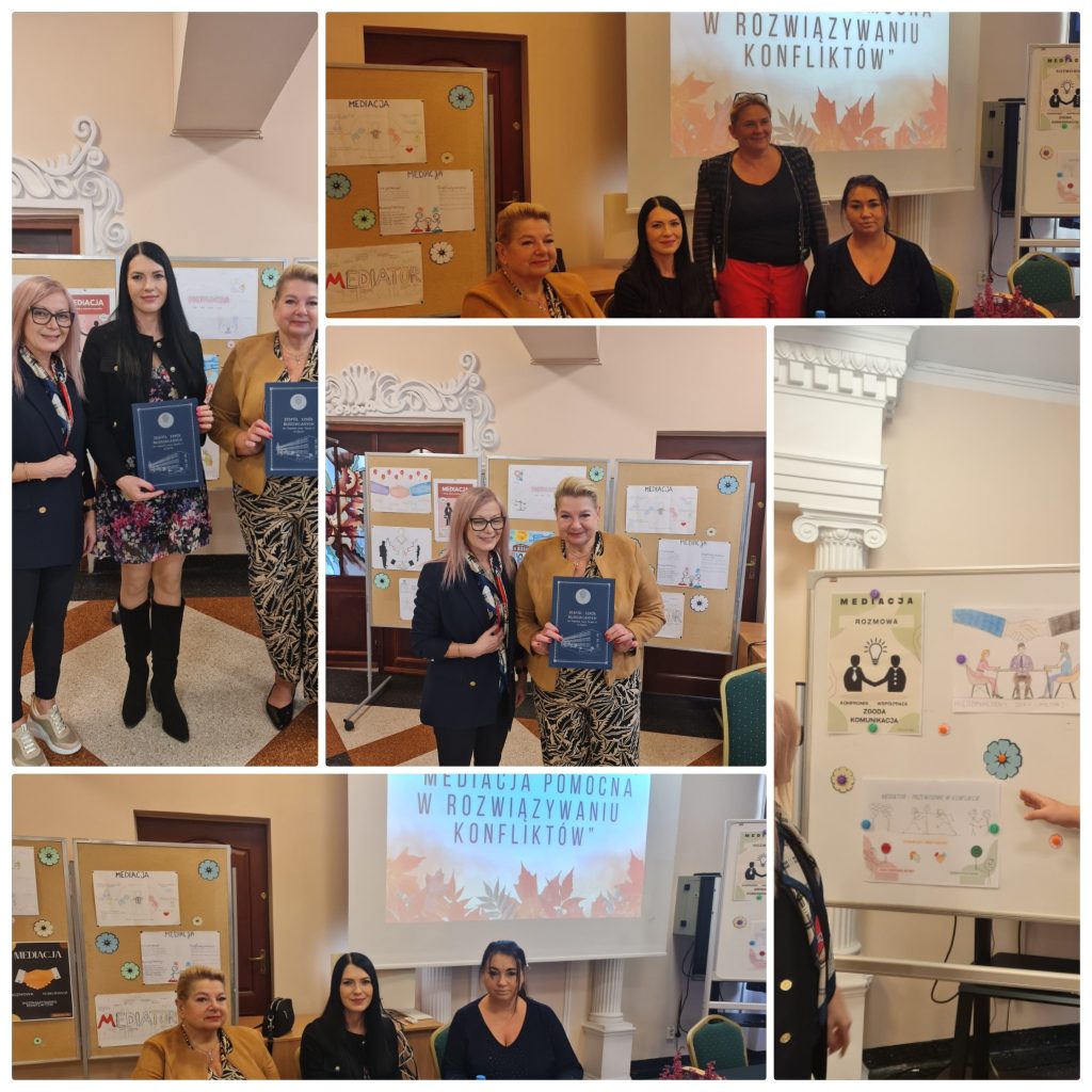 Spotkanie zakończyło się uroczystym rozstrzygnięciem konkursu plastycznego na temat mediacji. Zaproszeni goście wręczyli laureatom dyplomy oraz nagrody książkowe, podkreślając ich zaangażowanie i kreatywność.