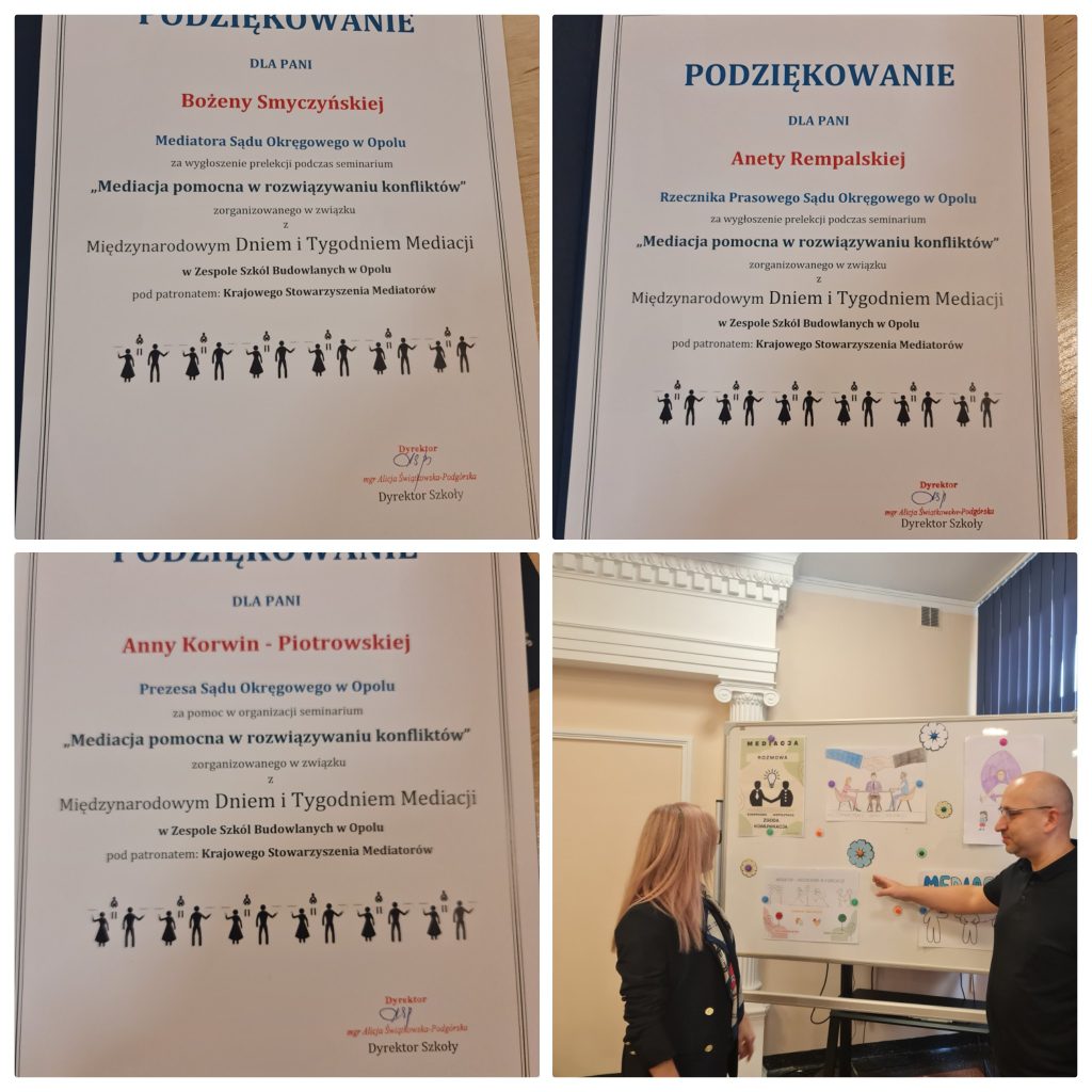 W dniu 23 października w Zespole Szkół Budowlanych w Opolu odbyło się kolejne spotkanie mediacyjne, które zgromadziło uczniów oraz wyjątkowych gości. Zaproszonymi prelegentkami były pani Bożena Smyczyńska, mediatorka z listy Sądu Okręgowego w Opolu, która wspiera naszą szkołę podczas seminariów mediacyjnych już od dziesięciu lat, oraz pani Aneta Rempalska z biura prasowego Sądu Okręgowego w Opolu, która dołączyła do grona prelegentek.