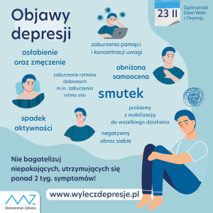 23 lutego to Dzień Walki z Depresją. Świadomość depresji z roku na rok rośnie, jednak nadal wiele osób nie zdaje sobie sprawy z powagi tej podstępnej choroby uważając ją za wymysł XXI wieku. Niestety problem dotyka coraz młodsze osoby, także dzieci i młodzież.