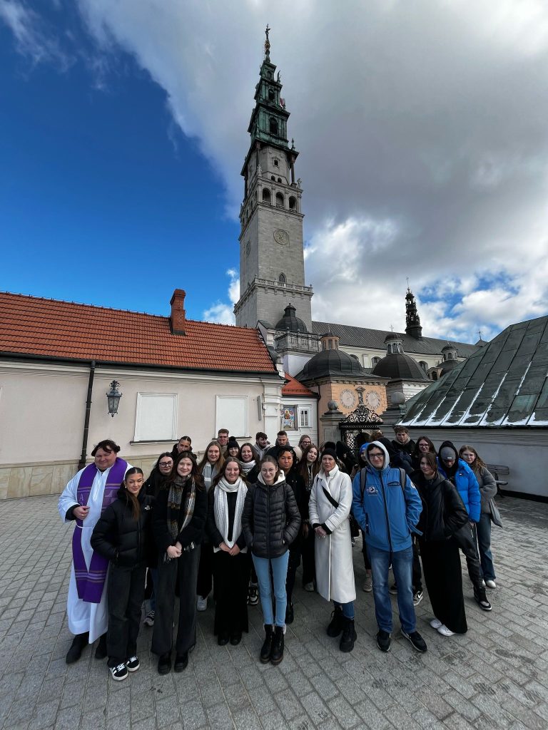 W lekko mroźny, ale pełen nadziei poranek, uczniowie klas 5TA1, 5TA2 oraz 5TB, wraz ze swoimi wychowawcami – panią Lucyną Magierowską, panią Iloną Kałamarz, panem Markiem Synowieckim oraz księdzem Piotrem Walą – wyruszyli do Częstochowy, na Jasną Górę, by prosić o wsparcie w nadchodzącym egzaminie dojrzałości.