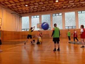 Jak wyglądał nasz tydzień pracy? Codziennie mieliśmy trzy godziny zajęć z języka angielskiego, podczas których przygotowywaliśmy materiał do słownika „Zdrowy styl życia”, zawierający tematykę od sportu, diety, rekreacji po zagrożenia zdrowia czy korzyści płynące ze zdrowego stylu życia oraz przygotowywaliśmy się do opracowania instrukcji gry kin-ball – naszego głównego celu projektu. Następnie mieliśmy trzy godziny zajęć sportowych, przygotowujących nas do roli instruktorów gry kin-ball, którą zamierzamy pokazać naszym kolegom i koleżankom w szkole po powrocie ze Słowacji. W ostatnich dwóch dniach oprócz ćwiczeń, przygotowywaliśmy też materiał do filmowej instrukcji gry.