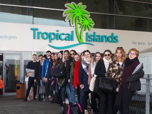 Trzecia grupa, 18 uczniów, wyjechało do Niemiec, gdzie w Brandenburgu ćwiczyli umiejętności wykonywania tarasu, patia z różnorodnego kamienia naturalnego i betonu. I tam czas wolny był świetnie zorganizowany – uczniowie zwiedzili Berlin, Poczdam, bawili się też w Tropical Island, na miejscu natomiast rozwijali znajomości ze stażystami z innych krajów podczas wieczorków integracyjnych, bilarda i piłkarzyków.