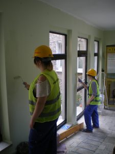Po powrocie ze stażu nadszedł czas, by uczniowie pokazali, czego się nauczyli. Swoje umiejętności wykorzystali w doskonały sposób – łącząc pracę z pomocą innym. Część uczniów wykonała remont kilku sali szpitalnych na oddziale dermatologii Szpitala Wojewódzkiego na ulicy Katowickiej, część wyremontowała pomieszczenia wspólne w Domu Pomocy Społecznej dla Kombatantów w Opolu. Jest to dowód na to, że można osiągać korzyści ze współpracy ze środowiskiem lokalnym – nasi uczniowie pokazali i sprawdzili swoje umiejętności, placówki lokalne mają pięknie przygotowane pomieszczenia.