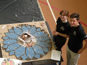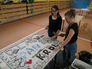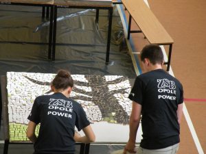 Druga część dnia poświęcona była warsztatom, w których udział wzięli uczniowie klas technikum (1ta, 2ta, 2tb, 3ta). Uczestnicy projektu podzielili się na dwie grupy mentorskie, których zadaniem było przekazanie zdobytej wiedzy i umiejętności swoim kolegom. Jedna z grup trenerskich uczyła projektowania miejsc relaksu z wykorzystaniem różnego rodzaju nawierzchni, druga natomiast przekazywała innym swe umiejętności z zakresu tworzenia mozaik. Grupy trenerskie najlepiej wykonujące swe zadania zostały zagrodzone.