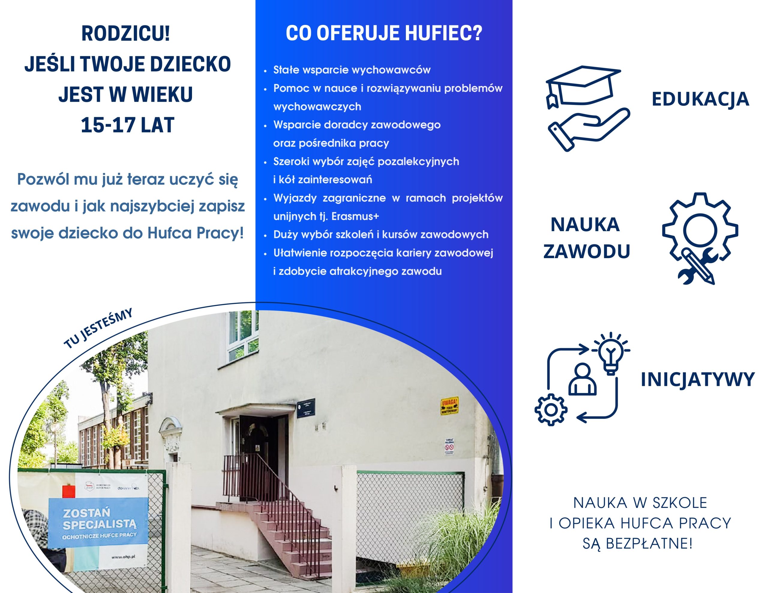- Wsparcie Hufca Pracy, pomoc w nauce i w rozpoczęciu kariery zawodowej.