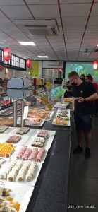Śniadanie przygotowywaliśmy sami, natomiast na obiadokolację wychodziliśmy do pobliskiej restauracji MARRADAS. Trzykrotnie mieliśmy też okazję poznać kuchnię wschodnią, próbując specjałów takich jak sushi czy owoce morza w różnych odsłonach.