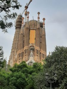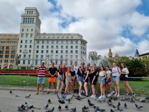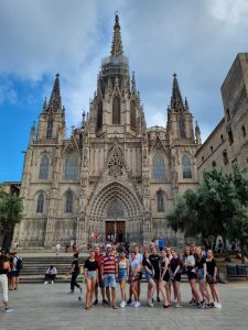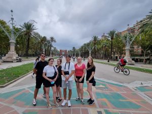 Część druga – czas wolny : po przylocie do Barcelony w niedzielę 05.09.2021 grupa stażystów wraz z opiekunami: wicedyrektorem, Wojciechem Piernikarskim i nauczycielem języka niemieckiego, Rafałem Brachmańskim spędziła poniedziałek wraz z tamtejszym opiekunem panią Kornelią na aklimatyzacji w nowych warunkach, wstępnym zwiedzaniu stolicy Katalonii- Barcelony oraz przygotowaniu materiału zdjęciowego do pracy w programach aranżacji wnętrz. Zwiedzanie miasta rozpoczęło się od słynnego Plaza Catalunya, stanowiącego serce gorącej metropolii, skupiającego wokół siebie obiekty turystyczne, architektoniczne oraz siedziby znanych międzynarodowych firm, takich m.in. jak Apple. Udając się w kierunku morza, grupa przemierzyła słynny deptak La Rambla, zwiedziła typowy targ miejski. Przechodząc płynnie do starej dzielnicy Barri Gotic, zwiedziła m.in. katedrę Barcelońską i podziwiała parlament kataloński. Udając się na południe nastąpiła chwila relaksu i refleksji na najsłynniejszej plaży o nazwie Barceloneta. Pełni wrażeń udaliśmy się na wieczorną kolację, a następnie podziwialiśmy w pobliżu naszego zakwaterowania wieczorny urok jednego z najsłynniejszych kościołów Europy, Sagrady Familii – dzieła Antonio Gaudiego.