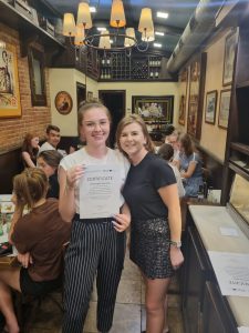 Staż zakończył się w piątek 17.09.21, na dzień przed odlotem do Polski i jego zwieńczenie polegało na przedstawieniu przez uczestników w ramach indywidualnych prezentacji prac wykonanych w programie Photoshop, przedstawiających obróbkę cyfrową cudów Barcelony. Tego dnia wieczorem, w ramach uroczystej kolacji, stażyści otrzymali certyfikaty uczestnictwa w programie Erasmus+.